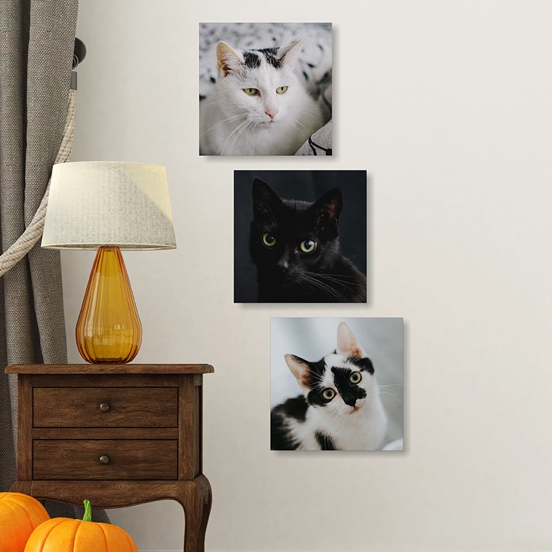 Give each canvas panel its own individual look by changing the filters in our design tool. Leave one print in full colour, but edit the other 2 to black and white and sepia. When hung in a diagonal line or random cluster, this quirky design will look striking.