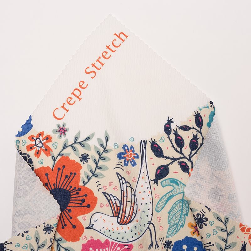 Using a sublimation printing process, the environmentally friendly printing inks are directly locked into the fibres of the fabric using heat. This results in a permanent print that won’t scratch away or fade over time, and has beautifully vibrant colours with an even and consistent tone. The bright white base tones means all colours will pop, but particularly brighter colours with bold graphics and shapes. Details of your design will be printed sharply and precisely. The solid construct of the fabrics also means that any design is suitable, with no limitations to your creativity. Patterns can be slightly disrupted when the fabric is stretched, more so on the weft, but the recovery is perfect. The matt finishes of the crepe fabrics gives your design the perfect finish for a striking look.