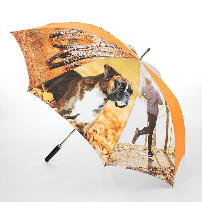 Tip your hat to British culture and create a themed customised umbrella. Use images of the union jack, Big Ben, red postbox, cups of tea, the Queen, stamps etc for a themed artistic photo collage. Printed all over, this will look totally cool and different to any other umbrella on the common market.