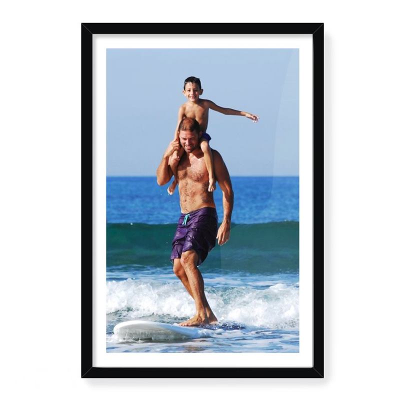 Turn boring walls into brilliant walls with these personalised framed prints. Design framed photo prints online with Bags of Love and see your special photos in a whole new light. These striking prints are available in a wide range of sizes. We take the hassle of framing your photos away from you, giving you the option to both print your images and frame them in stylish box frames in one simple step. The FSC frames come in your choice of matt black or glossy white and have a 35mm depth to give your photos perspective and impact. The pane is made from anti-glare acrylic. This material not only looks great, but is lightweight, durable and shatterproof. We print your photos in full, permanent colour and give you the option of border widths to give the images a truly luxe finish. To make installation a breeze, we also include cord hangings and fixings with your order.
