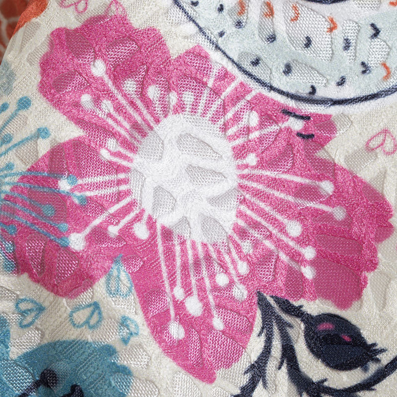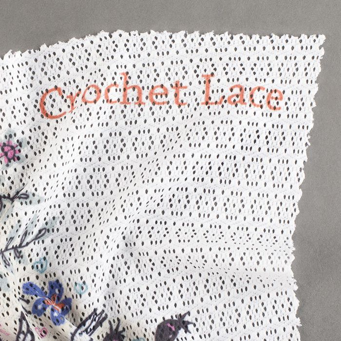 Our unique and professional printing process creates a permanent, full colour print, with an event tone and sharp details. The colour is striking and is particularly prominent on the Flora Lace due to its shimmering surface. Bold colour designs work well as they will show through on the reverse but avoid using designs with too many fine details due to the very open weave. Our crochet lace has a warm base tone, and similarly we don’t recommend printing very fine detail due to the nature of the fabric. However, the Princess Lace has a fairly solid construct, so all designs are welcome, and the glossy nature of the satin will bring your designs to life.