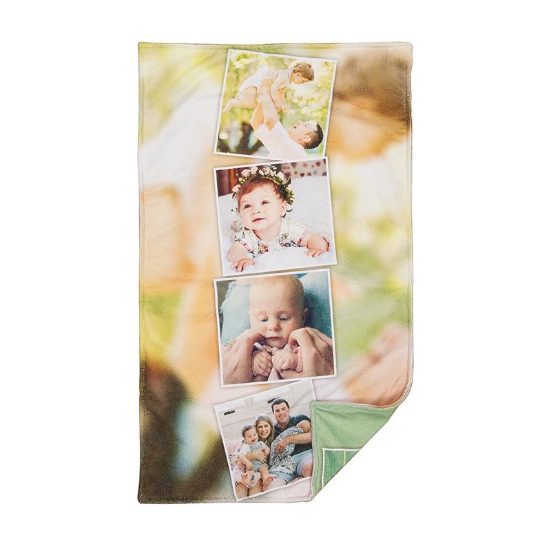 Your towel is made from super soft towelling material, that features a short pile with natural white flecks in the fibres. The flecks are minimal, and are a natural occurrence of towelling fabric. Due to this, we suggest creating a photo collage or printing a design that has a lot of colour and details. This will really make your photos pop. Please note that solid blocks of plain colours will make the white flecks more noticeable, and could disrupt the flawless print.