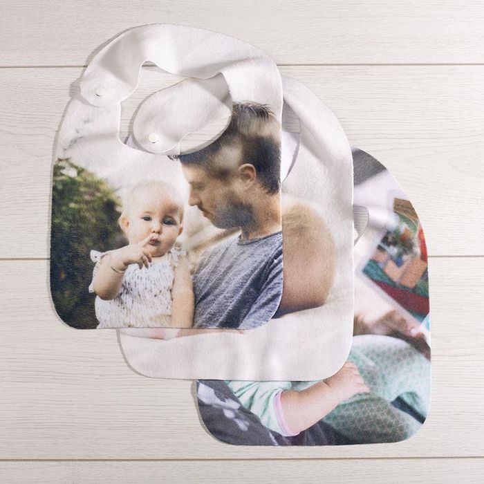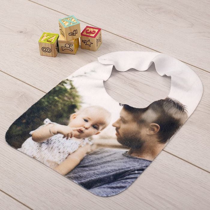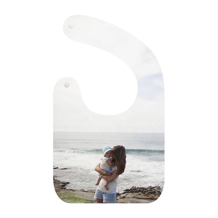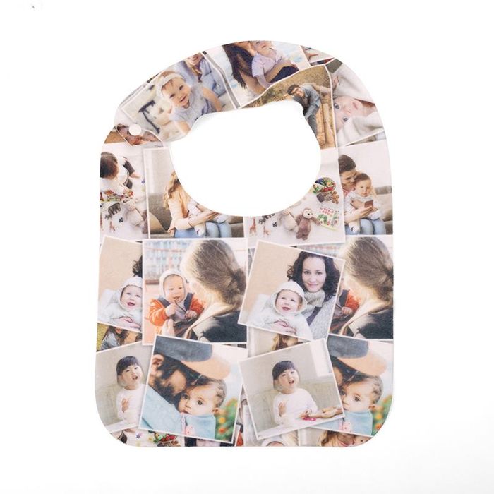 We think that personalised baby bibs with a photo montage of the little one well and truly covered in food make for a great design idea for a wonderful gift. For a new or expecting mother, you could even add a personal message using the text function within our design tool. Add baby’s full name and date of birth or date of christening (or both) to these bibs to make amazingly personalised christening bibs. You can do this alongside using ‘baby’s first photo’ to make a thoughtful gift or a memento of the special day.