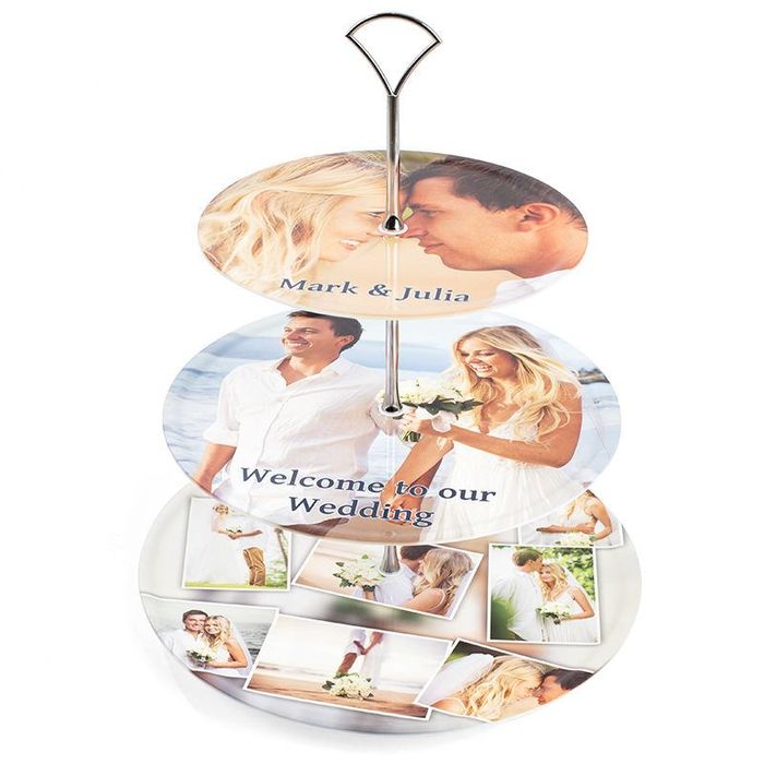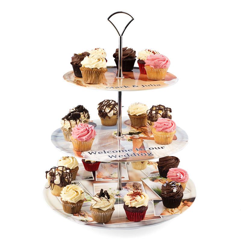 Each tier is printed with your unique photos or text to give your afternoon tea a bold statement and the silver stem adds a touch of elegance. At approximately 35 cm tall this neat personalised cake stand will look a picture on any kitchen worktop or dining table.
