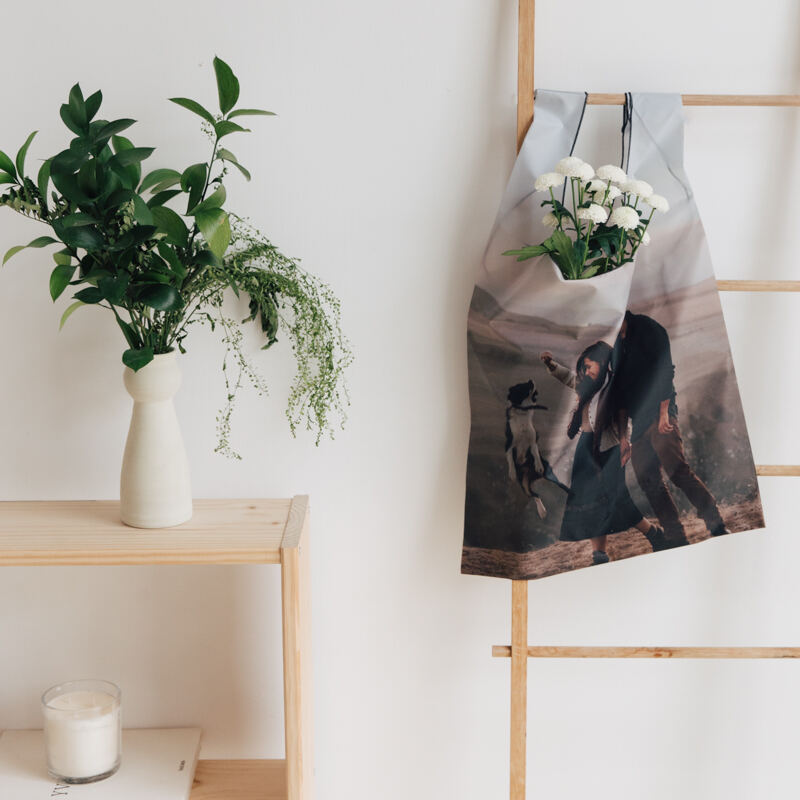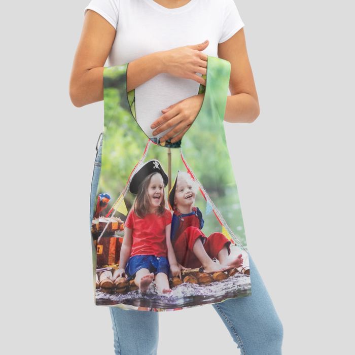 Reinvent your weekly shop with a pop of colour and cheerful images. Print your own carrier bag with a collage of family photos. You can print on both the front and back to ensure all areas are personal to you. As one continuous piece of fabric, you can be assured that the contents of your custom carrier bag are safe as the risk of ripped seams is avoided. Print a family portrait on one side and your beloved furry friend centre stage on the other side of the custom carrier bag. Create one for each member of the family to match or keep it unique to them with their favourite images. As these custom-made carrier bags are waterproof it makes them extremely versatile, you can even take them with you to the pool, gym, or the beach. A quick shake is all you need to make the water run right off. Spacious enough for a quick visit to the shop, you can throw it over your shoulder and head out on your way. The wide straps of personalised carrier bags help to disperse the weight across your shoulder, so even your heaviest loads will be easier to carry.