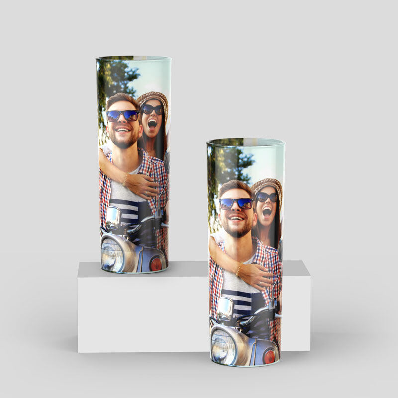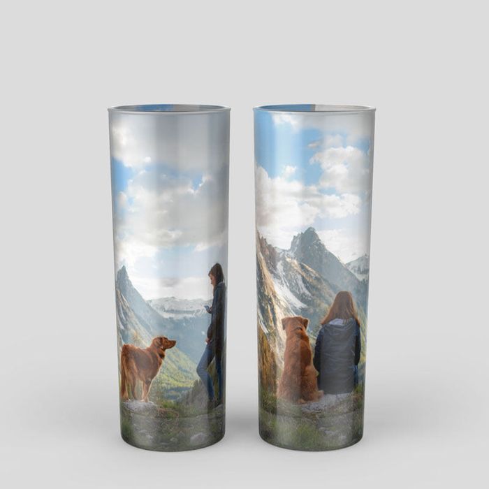 This glass is great for simple cocktails like a vodka soda (with lime, of course) or an elaborate Mojito. Your photo will look detailed and mostly opaque, but you should still be able to see how much drink is left in your glass through the print. The matte and glossy finishes will have the colours looking equally bright, so choose the finish that you like the best for your photo gifts.