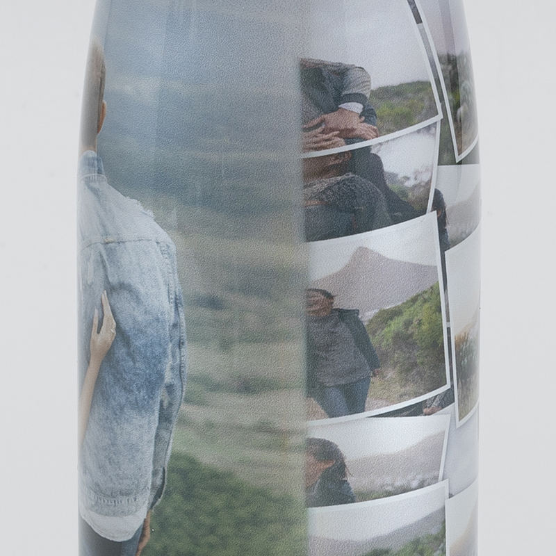 The digital process which we use to print your personalised insulated water bottle does not use white ink. This means that any white areas of your photo will remain the stylish silver of the high-quality, BPA free, stainless steel for added authenticity and charm.