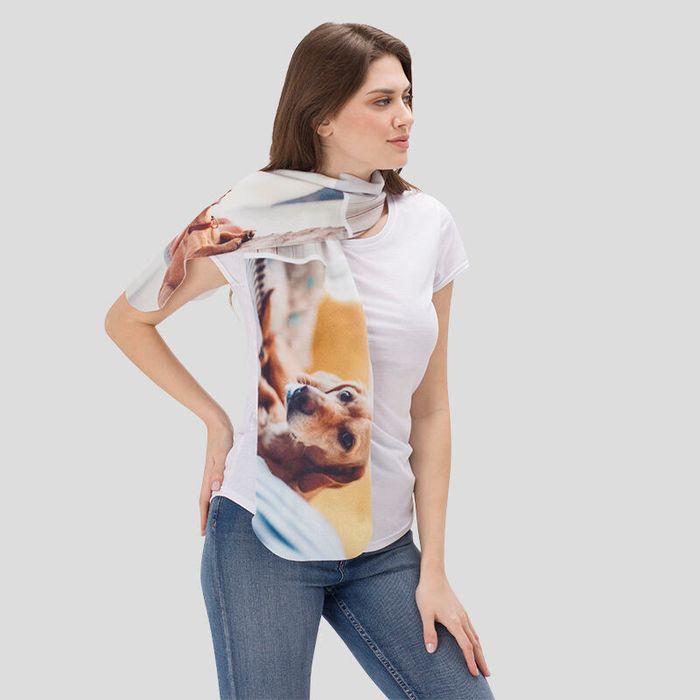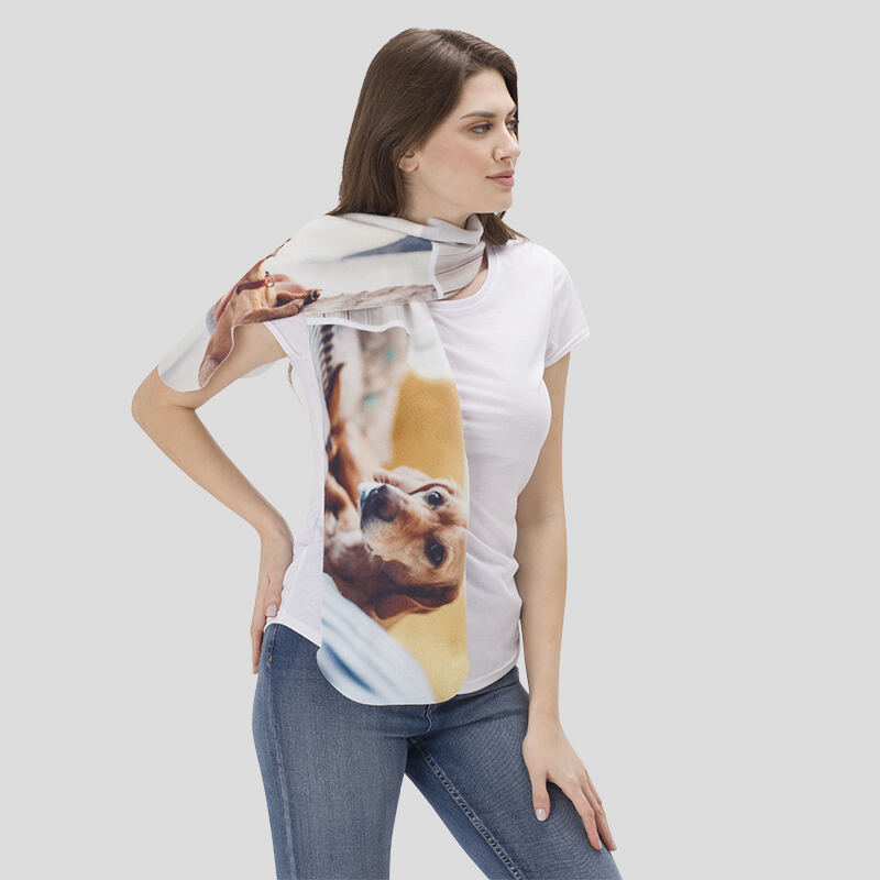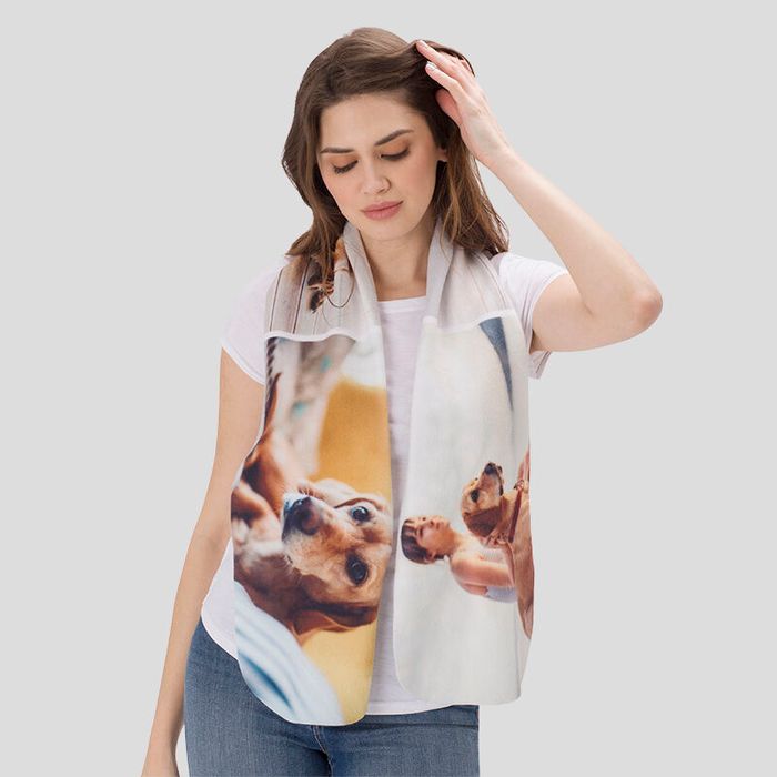 Our polar fleece fabric is soft and warm to protect you from the winter chill. It is also a blank canvas for you to create a personalised design, perfect for both men and women. Create the scarf specifically for yourself or a loved one based on favourite colours, taste and, of course, personality. There are no limitations to your design; use personal photos, images of other artworks, or just text. Use your design freedom and create something that is both thoughtful and functional. Custom printed polar fleece double thick, warm to touch and charming to look at.