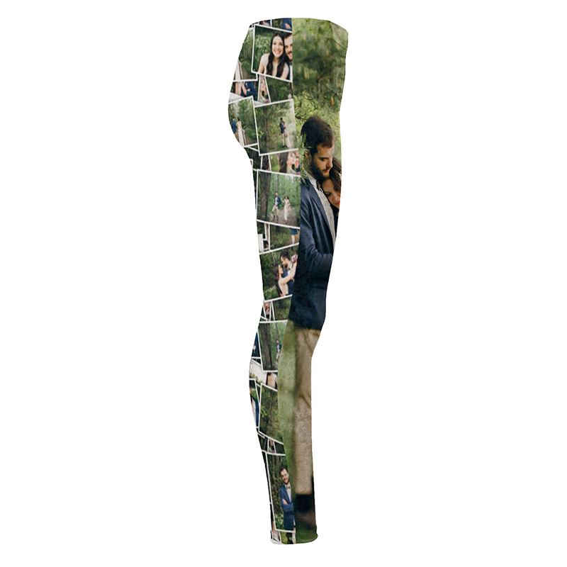 Your high waisted leggings have four areas that you can customise differently. You can personalise both the front and back, of each of the right and left legs with either the same photos and images or completely different ones. We love the idea of alternating these in an almost harlequin fashion so that your front right and back left photos are using similar colours, with a contrasting scheme for your front left and back right.
