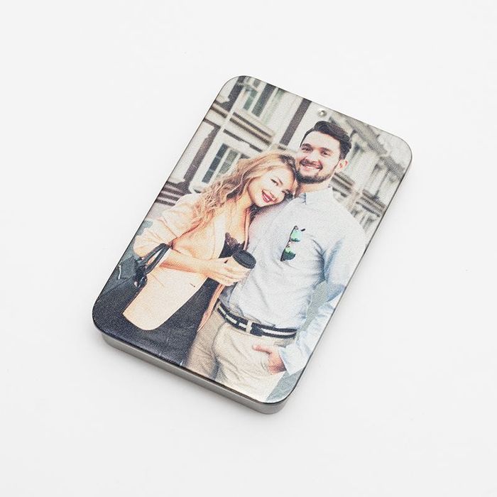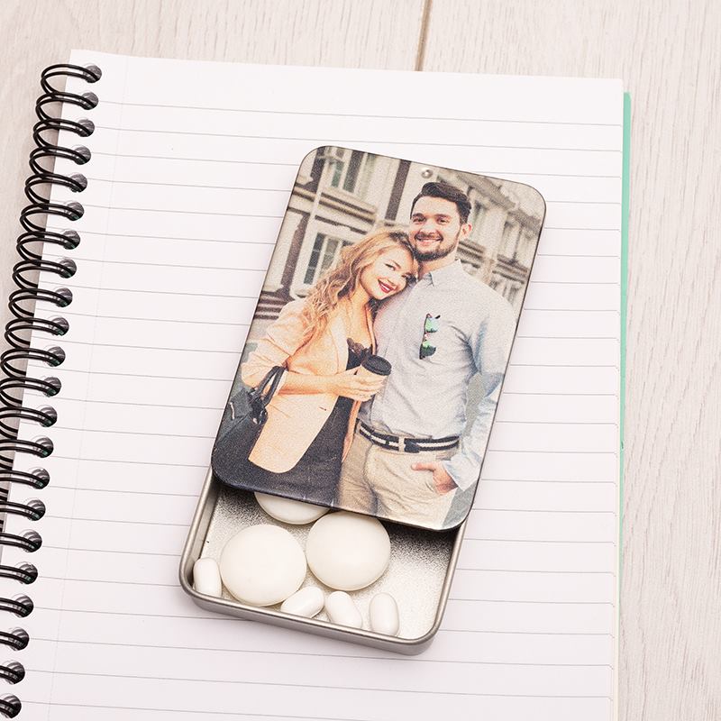 Your small pocket sized personalised mint tins are perfect for freshening up on-the-go as they can easily fit in your bag, pocket or purse. Exceptionally handmade, they're the perfect travel companion to keep on you at all times. Print a family photo, a memory from a weekend away or even a picture of your pet so you can take them with you wherever you go. Printing directly onto the metal results in a characteristic 'etched' effect, where the surface texture is visible through your photos. The metal is moulded to feature a locking catchment, ensuring your mints don't fall out. Design a mint box for your partner to take with them on business trips, or treat grandma to a tin where she can keep toffees and mints.