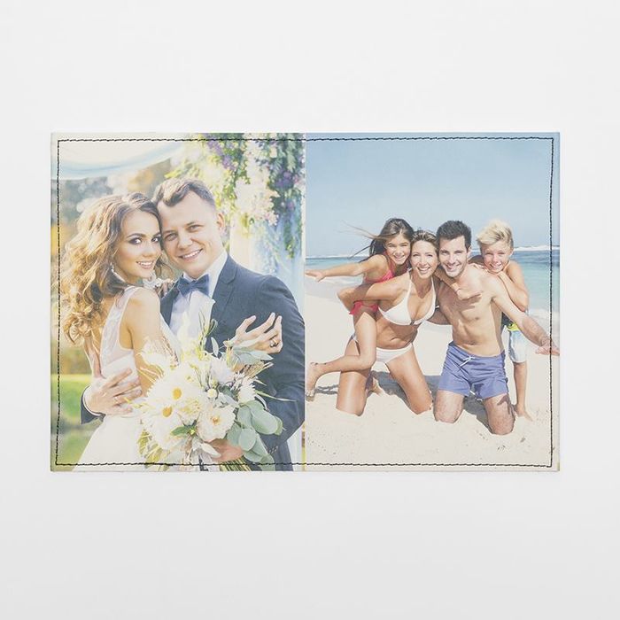 There's 4 areas to personalise - the front cover, back cover and 2 internal side flaps used to tuck your passport into. Portrait photos will work better, however if you do have a landscape photo, use one of our Effects to cover the area edge-to-edge. Creating a photo collage with all your travel memories and pictures of landmarks is a cool design and turns your personalised passport holder into a nostalgic keepsake. Upload several photos and create a montage using one of our ready-made collage styles or design your own.
