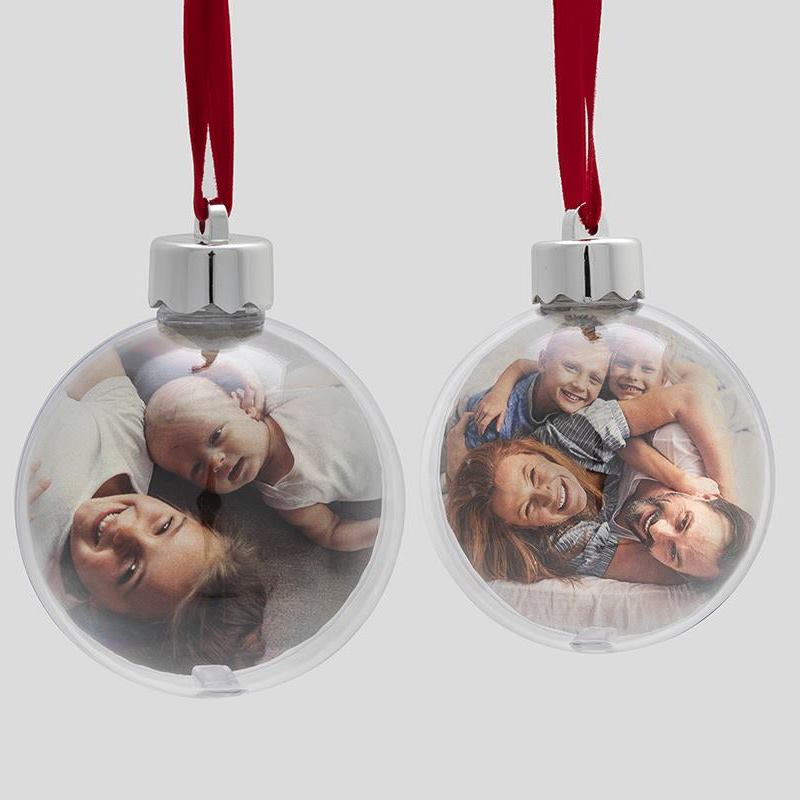 Your personalised photo Christmas baubles will have a beautiful, festive finish and will add a personal touch to your Christmas decorations. Printed photos sit in the centre of the round, long-lasting baubles which have a transparent, glossy finish to show off the vibrant, coloured print. Give beautiful gifts this season with a range of uniquely designed ornaments.