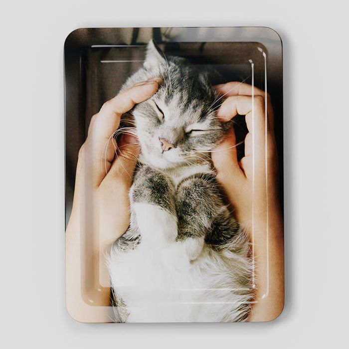 Your photo tray has a slight curved lip around the edges to stop things from sliding off when you’re sat down eating or carrying it out of the kitchen. Your photo or design is printed edge-to-edge for a flawless look, and the reverse remains a plain white glossy plastic. Photos print sharply, so even high-definition images will look ready to pop out from the tray!