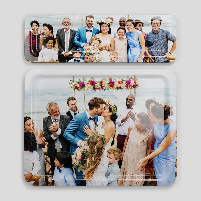 Personalised photo trays are so eye catching when designed with a photo collage. Printed with holiday snaps, wedding pictures or even a collection of celebrity crush images, the photo tray gift is both practical and meaningful.