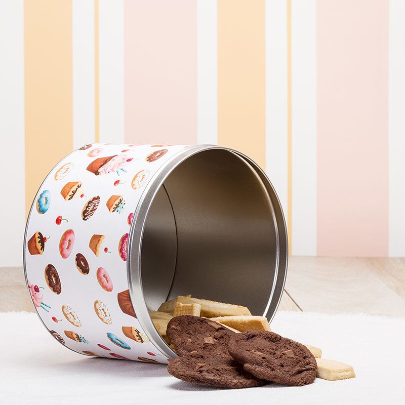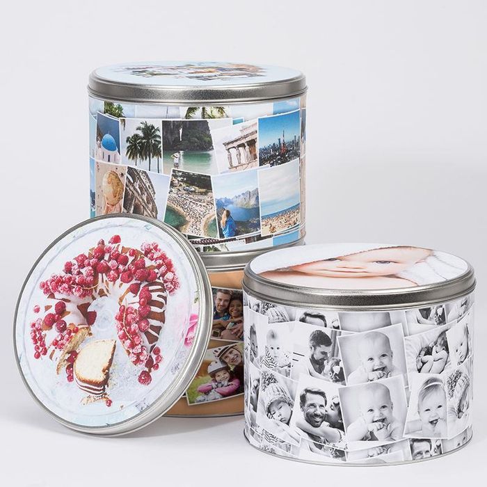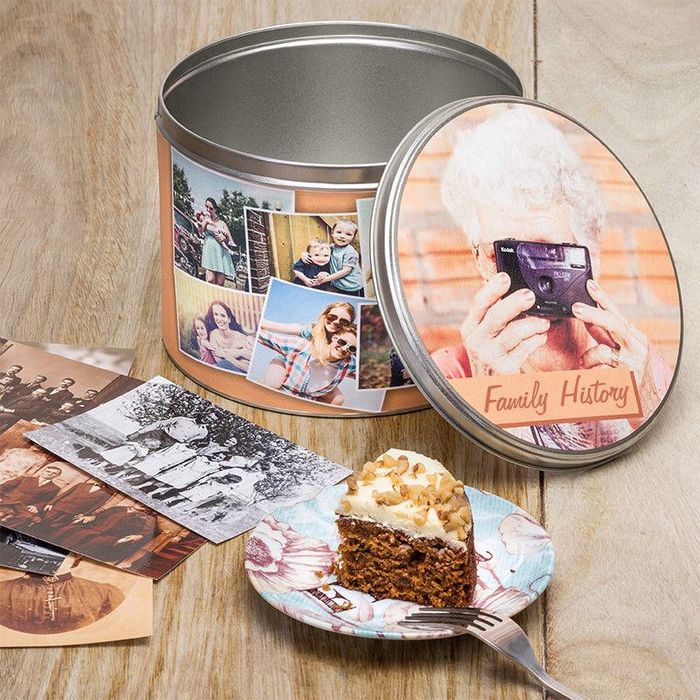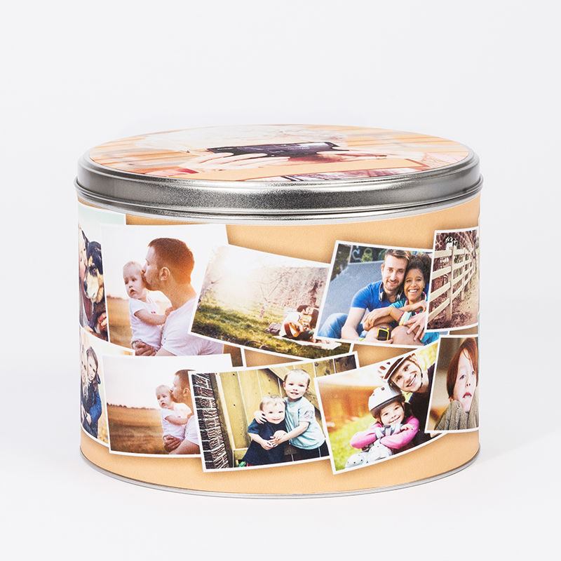 One popular use for this large personalised round tin is for cookie storage. If you have a large family, you need a big cookie tin. And upon our cookie tins you can add text, photos and even instructions like: Keep Out - Ask Mum First! These custom round cookie tins make for a lot of fun, but also a practical purpose with a resealable lid and large storage capacity of 5 litre.