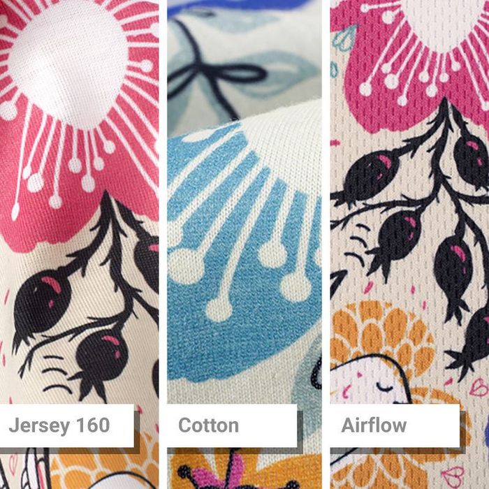 Our Bounce Cotton Jersey is moisture wicking, drawing sweat away from your skin. It has a good stretch with a matt finish. Some shrinkage will occur on the first wash, so bear this in mind when choosing your size. As our Cotton Jersey is made of a natural cotton it has a slightly off-white base tone, giving slightly muted colours in comparison to the other jerseys. This gives your t-shirt a completely different, authentic look.
