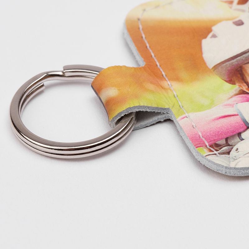 Our leather printing produces excellent results with beautiful saturated colours and high definition right down to very fine details. We strive to source the best quality leather available but note that some imperfections will almost always be present in the top layer of the leather. Small pockmarks and visible grain are unavoidable. Our printed leather has a long lifespan and will break in over the course of its initial use. This will result in creases in the surface of personalised photo keyrings, but this will add to its natural charms. If you want a printed leather key holder with photo both sides you will love our photo upload keyrings.