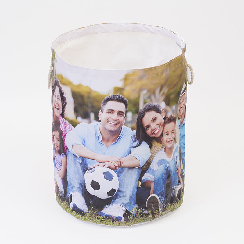 After busy play days, throw your children's toys in this strong, lightweight personalised toy bag and keep their bedroom neat and tidy. Customised on the front and back with your photos, this is a totally original storage solution that brings more fun and personality to the home. What's more, it's deep and spacious, standing upright on its own to make tidying easier. Made from soft fabric with additional rope handles and a waterproof lining, it's super easy to move from room to room and organise anything from dolls and teddies to balls and puzzle pieces.