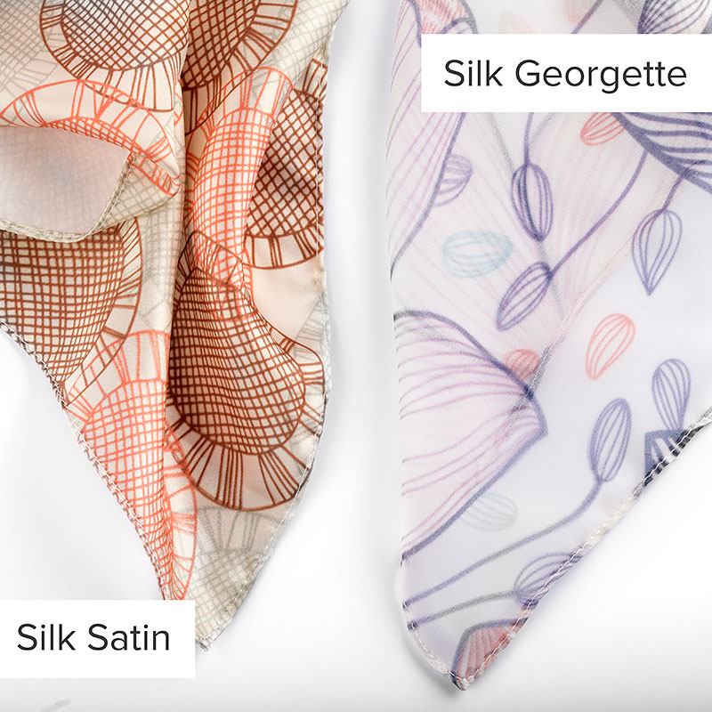 Make a collection, or treat yourself or a loved one to hemmed silk scarves. Printed and sewn by our in-house team, the fabulous scarves are made from 100% real silk and have a beautifully soft and floaty feel. Popular with fashion and textile designers, as well as making the perfect 12th anniversary silk gift too. Upload your design, photo, or collage and create something special.