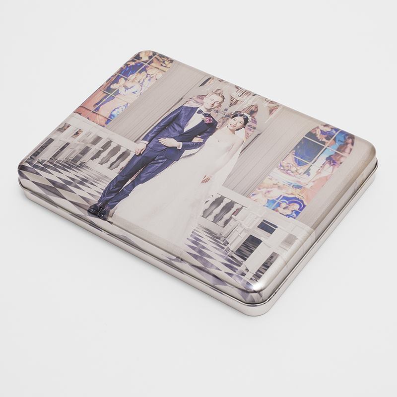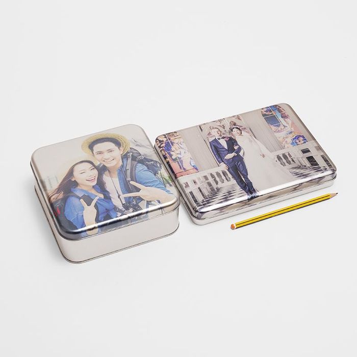 Please note that we do not print any white onto the surface before printing your photos, producing a natural, metallic finish showing the 'etched' like grains. If you want to create a vintage inspired storage tin with an old sepia-toned photograph, this charming quality adds to the overall effect and brings authenticity to your design.