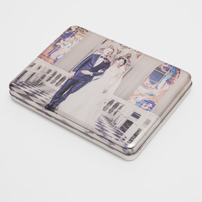 Made and printed to order in our studios by expert metal workers, your silver tin is an exquisite gift that has bags of personality. The metal is manufactured and moulded to produce the contemporary curved edges that give your designs that stunning 3D effect. The removable slip lid is incredibly secure, ensuring that the contents are contained without risk of falling out. We use a specialist printing process where the inks are impregnated directly onto the surface. The natural, authentic metal grain is visible through your print, but this creates a charming 'etched' effect that makes your silver storage tin box more distinguished.